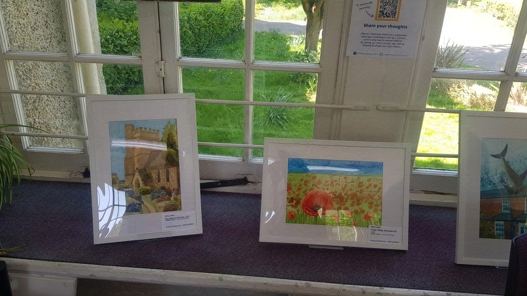 In the library we displayed artworks of local oxford scenes, landscapes and flora. Amy Letts’ work was in watercolours, Jean Wykes Oil on Canvas, and Jean Roberts Pen & Ink.