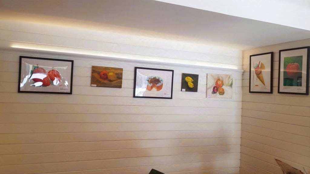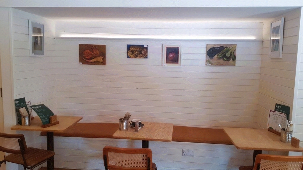 At Courtside Cafe we exhibited paintings of food including still lifes of bread, fruit, cake and icecream!